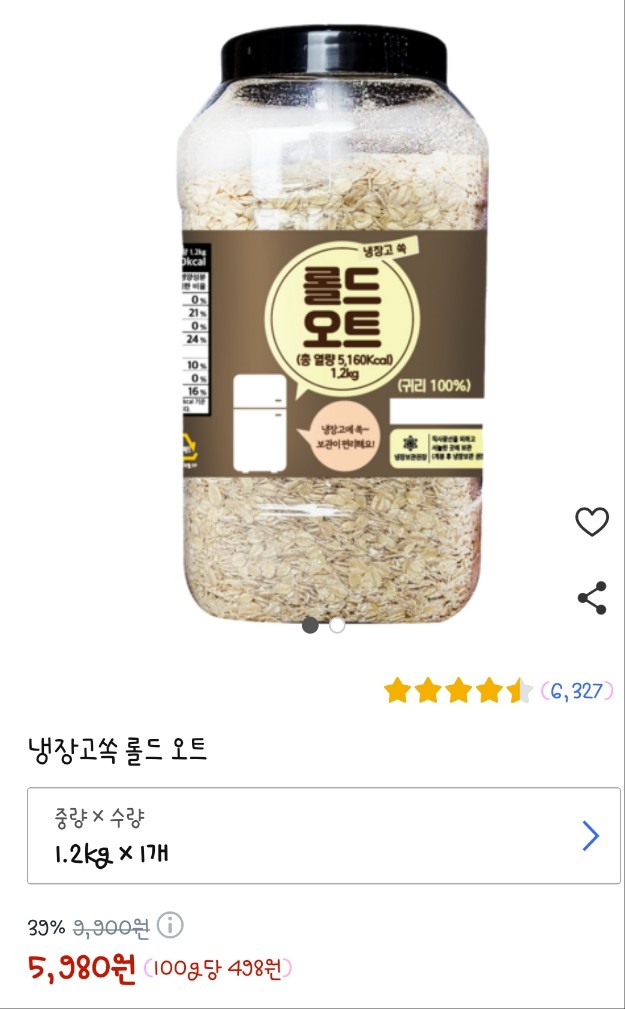 오트밀(귀리) : 저는 롤드 오트 사용하고 있습니다.